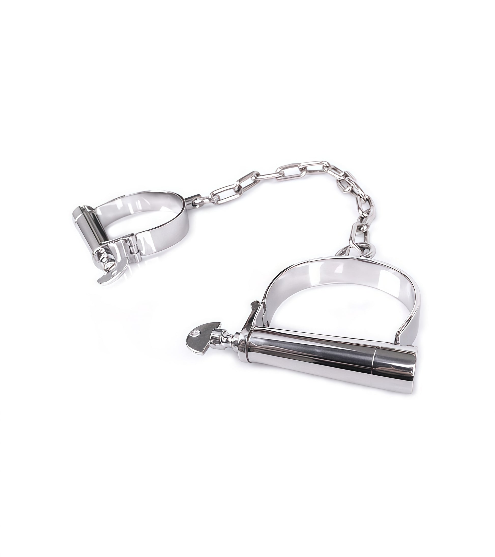 The Darby Leg Irons from Perfectra Instruments are high-quality stainless steel restraints designed for secure and stylish bondage play. Featuring a classic Darby-style locking mechanism, these leg irons provide a firm yet comfortable restraint, making them an essential tool for serious BDSM enthusiasts and collectors.