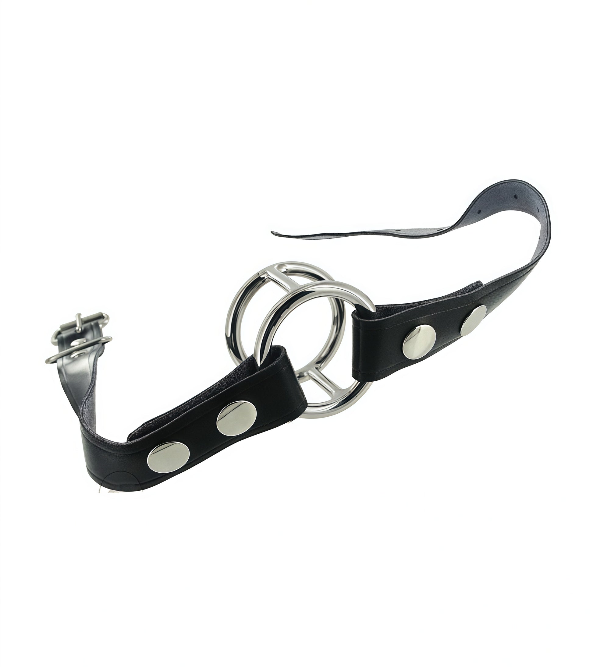 This is not your average ring gag — the double-ring mechanism allows deeper exploration and a locked-in experience that intensifies both visual and physical submission.