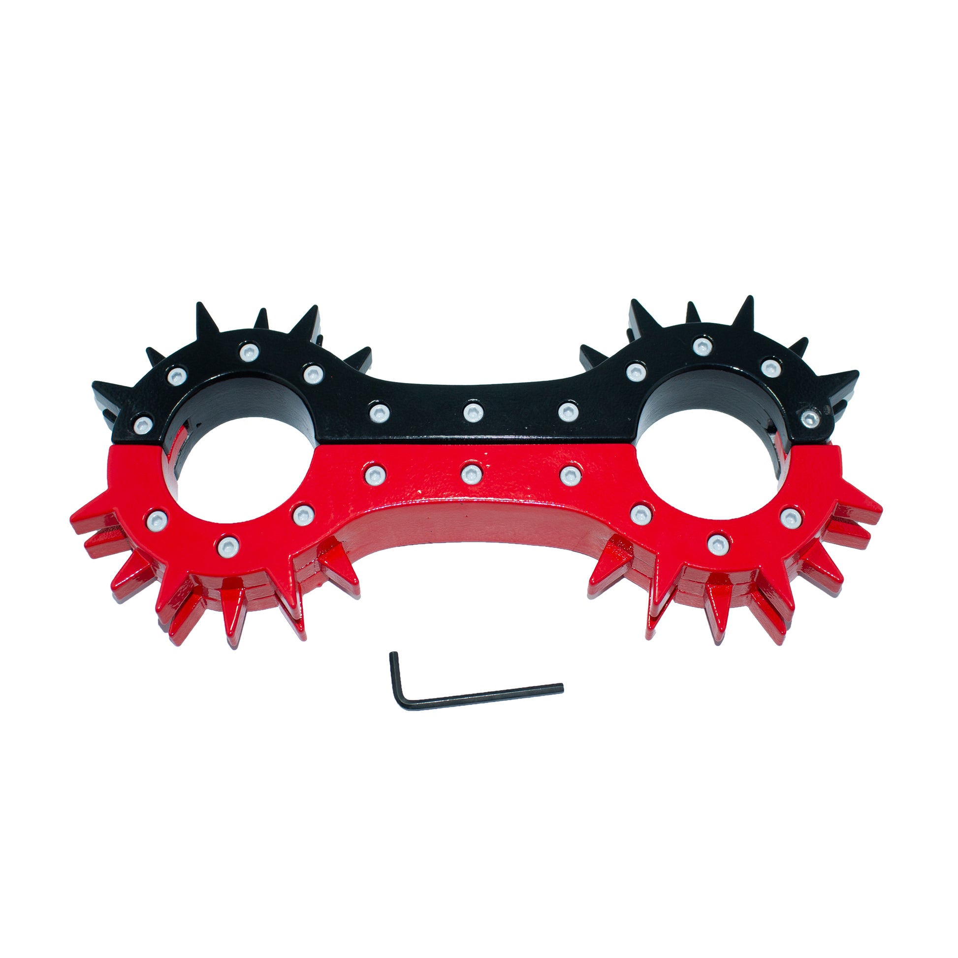 Heavyweight Spiked Aluminum Handcuffs – Red & Black BDSM Restraints for Intense Play