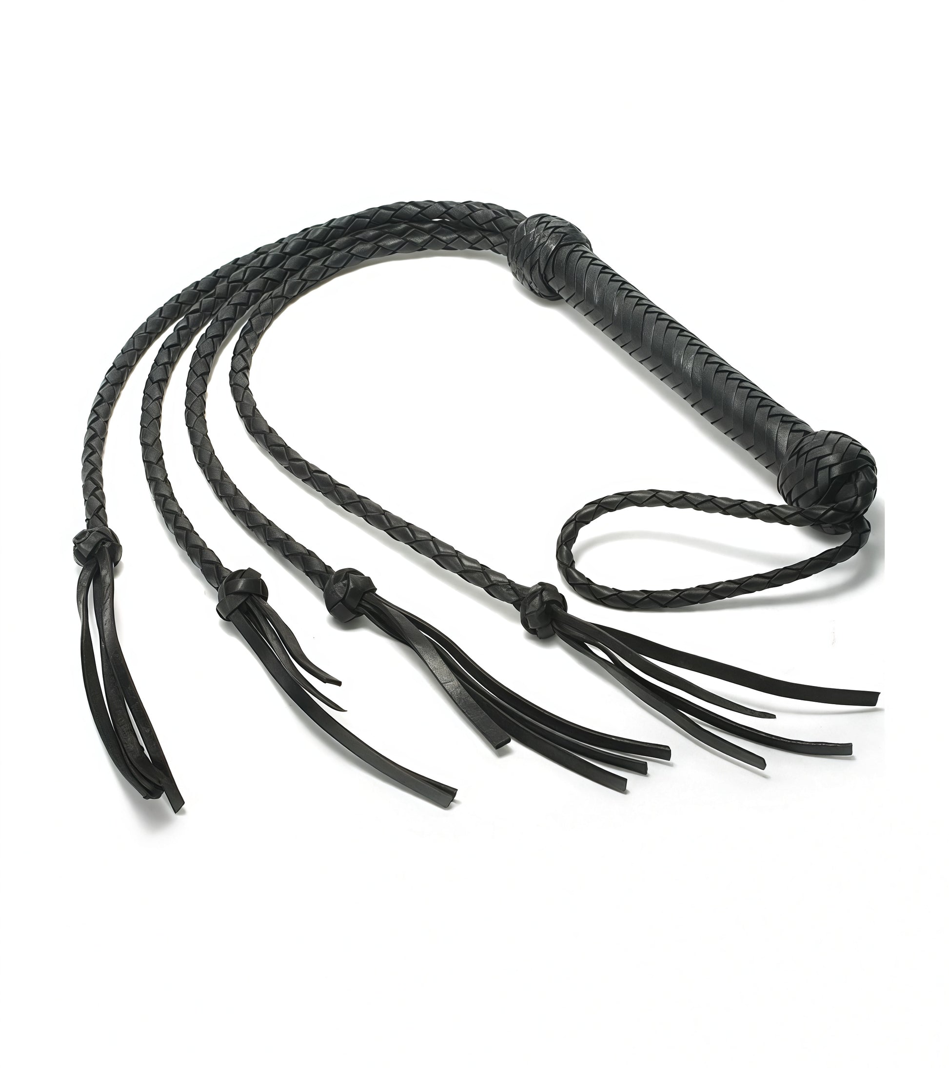 The knotted tips create a biting finish, while the leather strands give that satisfying thud that makes flogging such a staple in impact scenes. The wrapped handle is comfortable, non-slip, and well-balanced, offering full control whether you're delivering soft strokes or intense punishment. It's versatile enough for warm-ups and serious sessions alike.