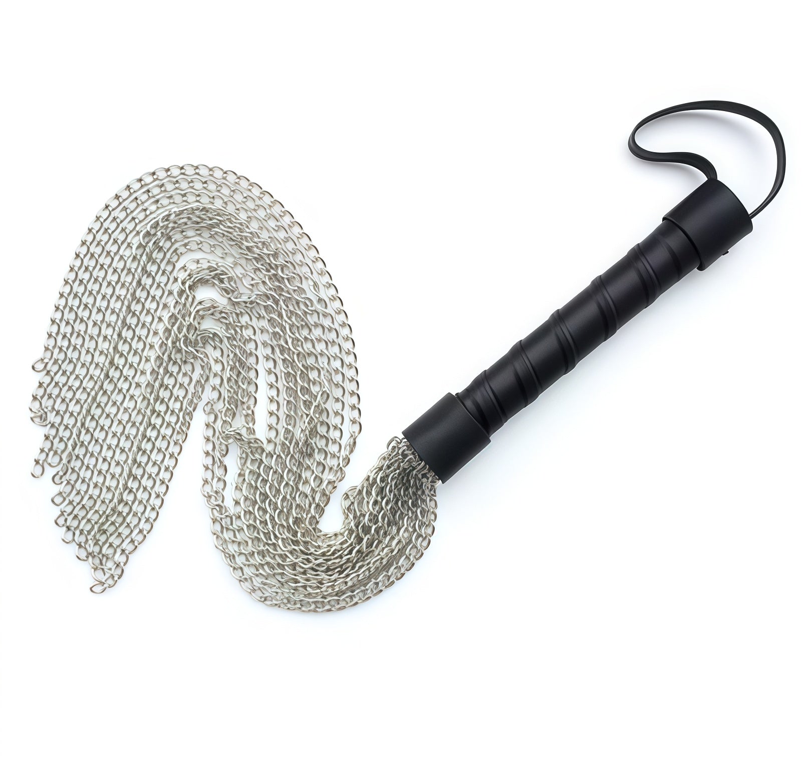 Unlike traditional floggers, this piece offers the best of both worlds: the raw force of metal chains combined with the warm, secure feel of leather. The chain falls produce a heavy, thuddy sensation that can range from slow, teasing strokes to intense punishment, depending on your technique. The clink of metal and the striking visuals add drama and authority to any BDSM scene.