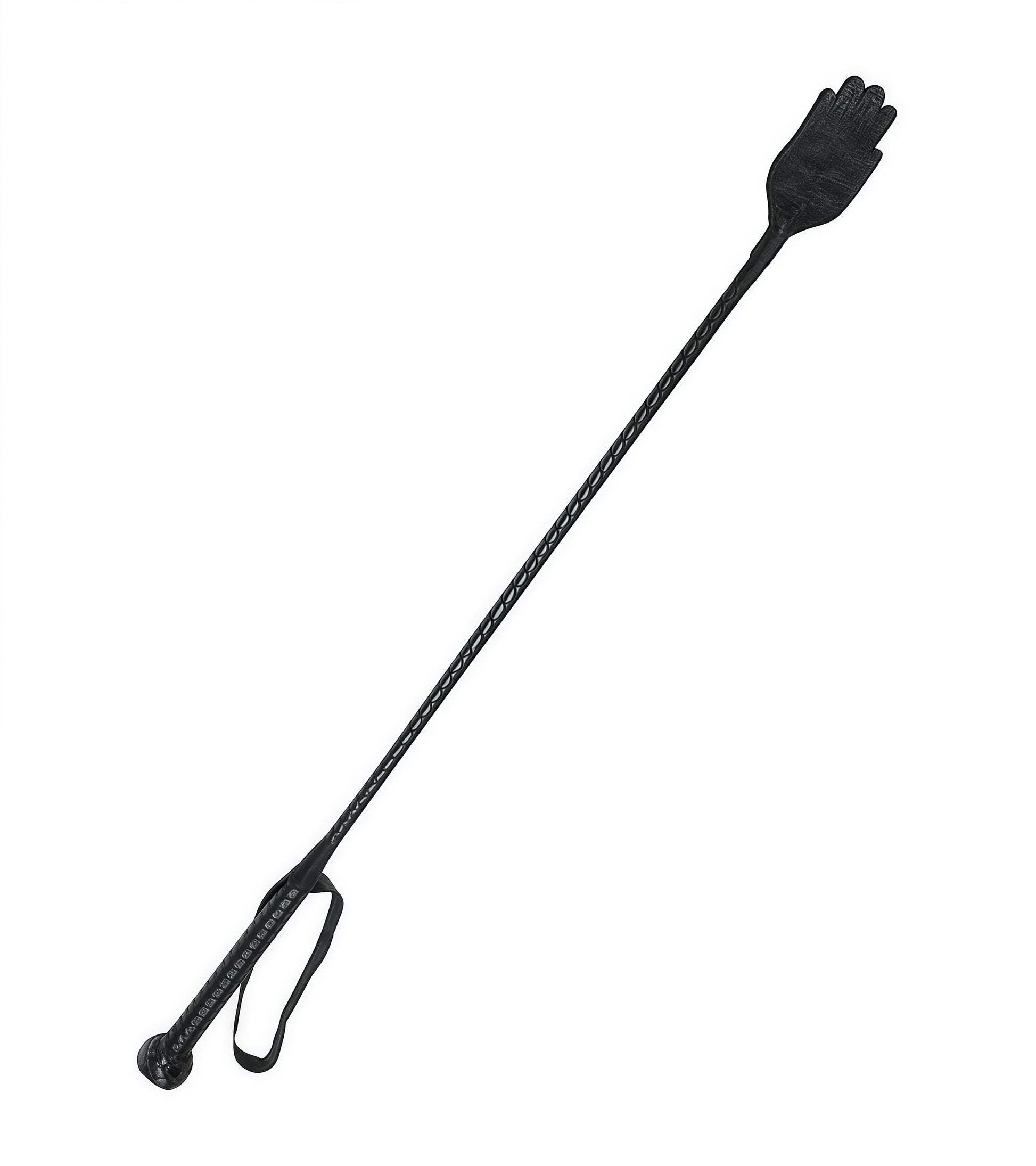 The crop is built with a reinforced shaft for durability, while the leather-wrapped handle ensures a secure, non-slip grip during heavy sessions. Its sleek black finish gives it a professional, commanding appearance, perfect for dungeons, clubs, and private play.