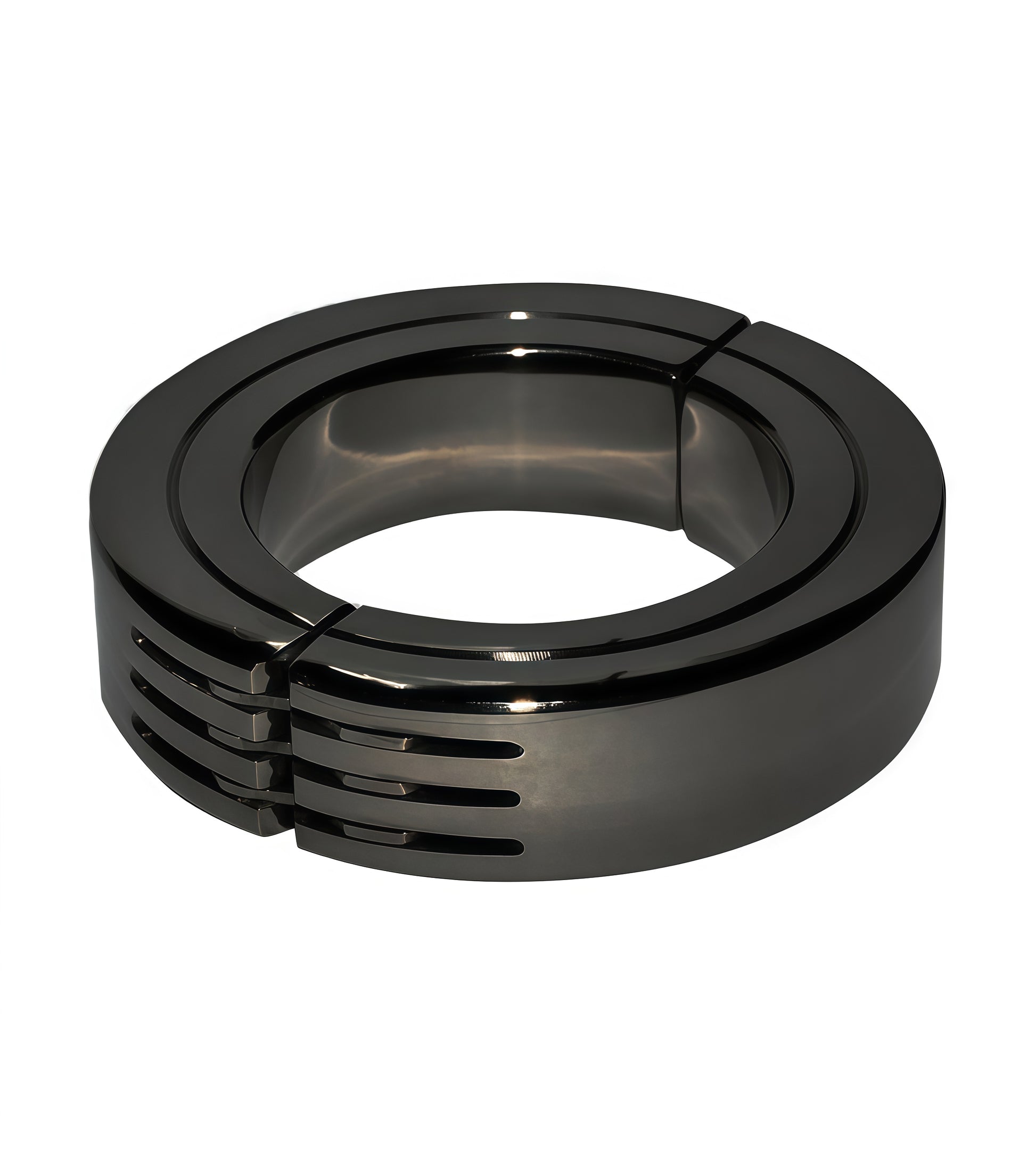 The hinged design makes application and removal simple, while the secure locking mechanism ensures a tight, reliable fit during use. Its smooth interior edges provide comfort, while the weight delivers the deep, stretching pull that serious ball stretchers crave. This piece combines aesthetic appeal with functional strength, making it a standout in any BDSM gear collection.