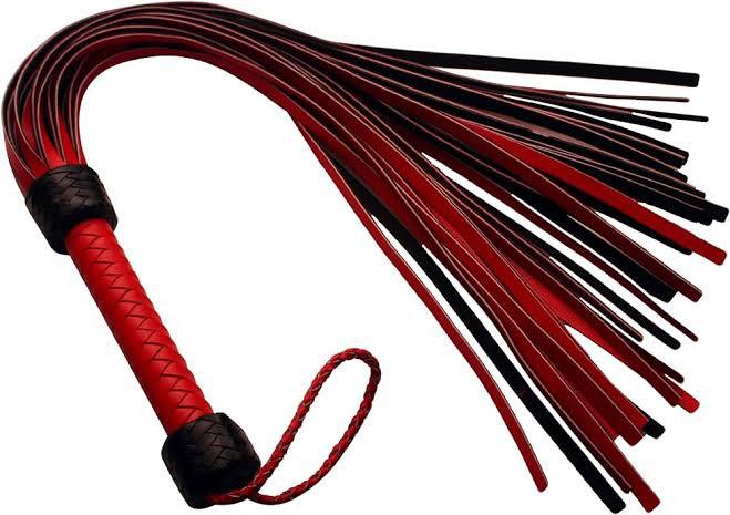 Red and Black Leather Flogger – Premium BDSM Impact Toy for Sensual and Intense Play