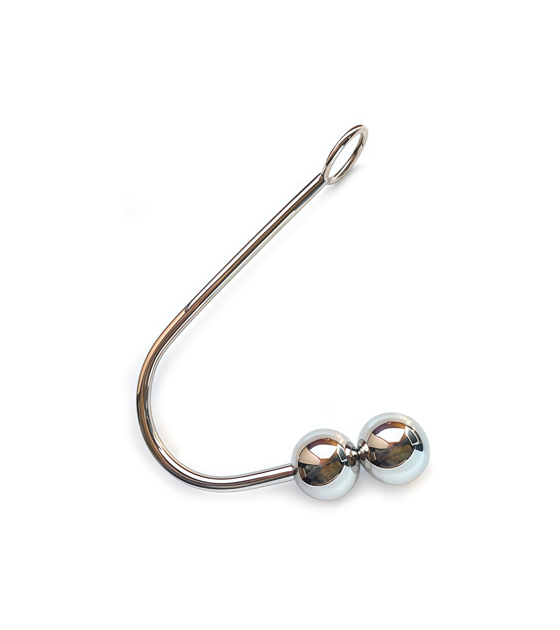 Featuring two perfectly rounded steel balls along the insertable shaft, the hook delivers progressive anal stimulation while the external hook attachment allows dominants to connect ropes, chains, or suspension gear. Whether used for anal torment, CBT sessions, or full bondage restraint, this device offers complete versatility and durability for professional-level play.