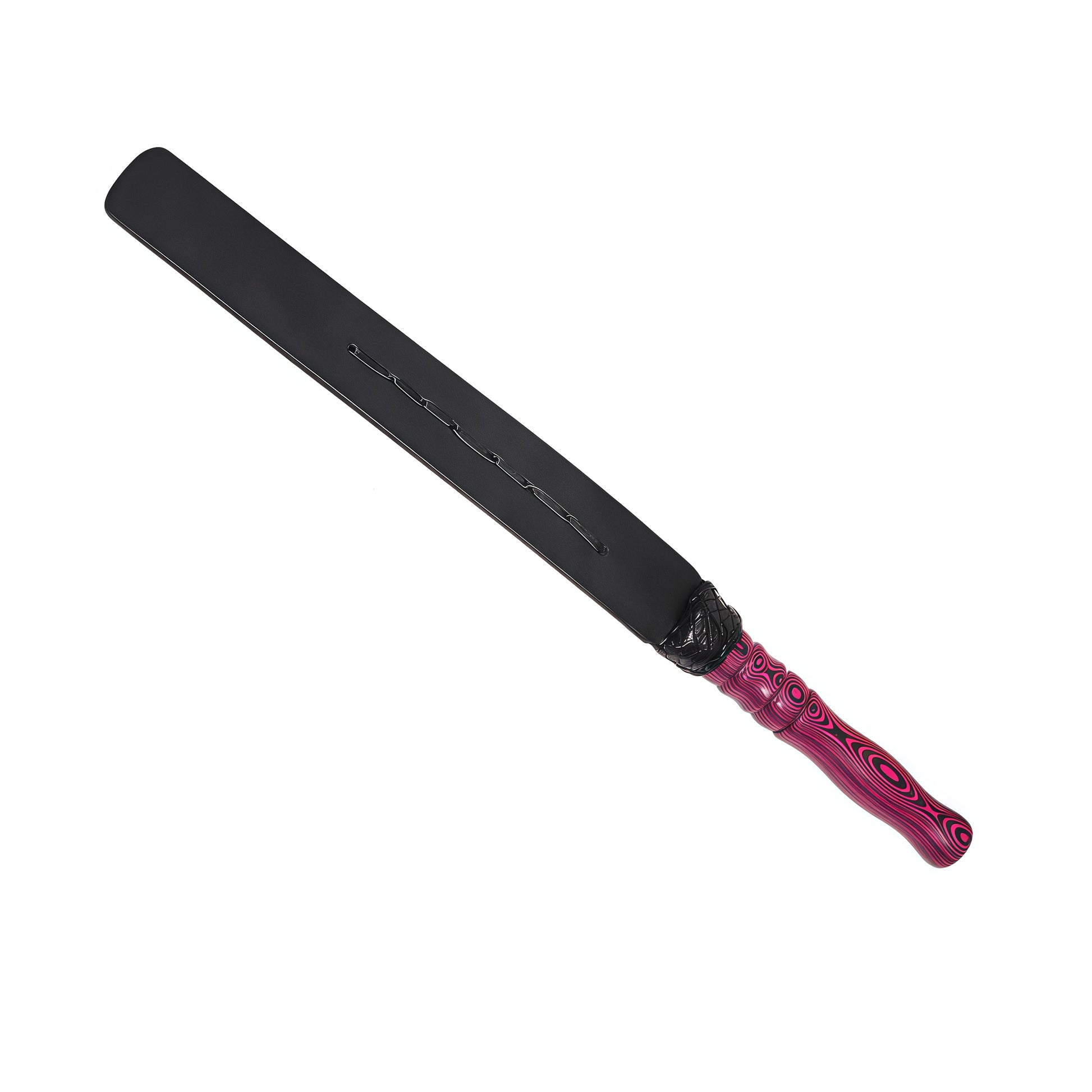 The solid wooden handle ensures a firm, comfortable grip, giving dominants precise control over intensity. The high-grade leather striking surface is built to withstand repeated use while offering consistent performance. With its classic, minimal design, this paddle is suitable for retail collections, professional dungeons, and serious enthusiasts.
